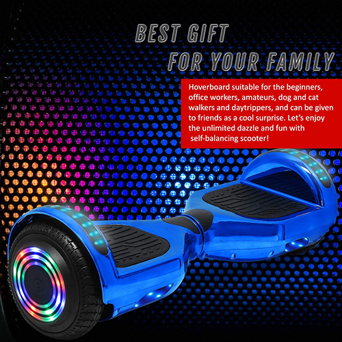 Chrome Blue 6.5 inch Hoverboard with Bluetooth Speaker & LED Flashing Wheels, Self Balancing Scooter (UL Listed)