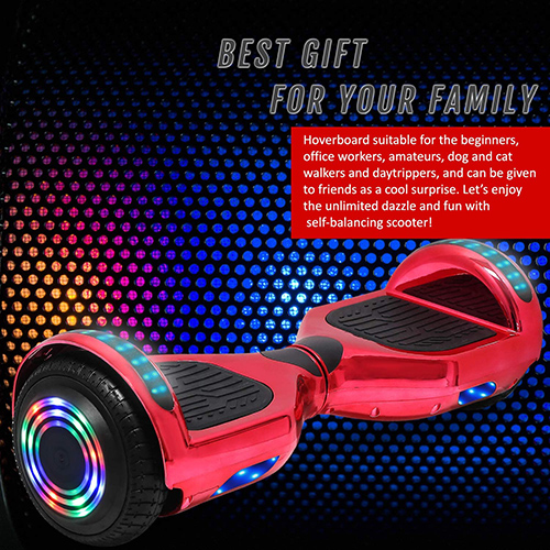 Chrome Red 6.5 inch Hoverboard with Bluetooth Speaker & LED Flashing Wheels, Self Balancing Scooter (UL Listed)
